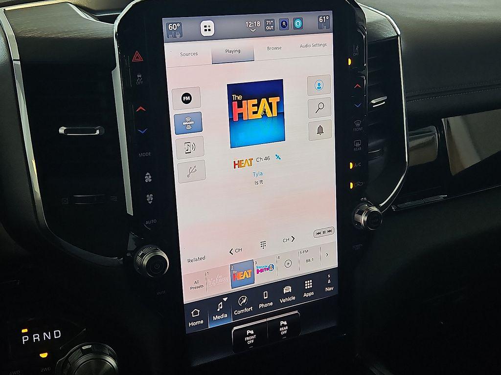 - Laramie Level 2 Equipment Group: Google Android Auto; SiriusXM Radio Service; USB Host Flip; Rain Sensitive Windshield Wipers; Integrated Center Stack Radio; Front Passenger Interactive Display; Integrated Voice Command with Bluetooth; Connectivity - US/Canada; GPS Navigation; 4G LTE Wi-Fi Hot Spot; GPS Antenna Input; SiriusXM with 360L; Global Telematics Box Module; Connected Travel and Traffic Services; Apple CarPlay; Disassociated Touchscreen Display; Secondary Active Grille Shutters; HD Radio; Smartphone as a Key Capable; 14.4"" Touchscreen Display; Dual Wireless Charging Pad; Uconnect 5 Nav with 14.4"" Display; Harman/kardon 19 Speaker Premium Sound; Cluster 12"" TFT Color Display; Power Tailgate