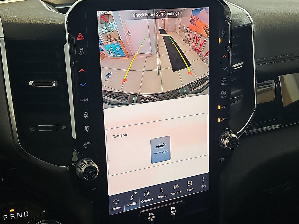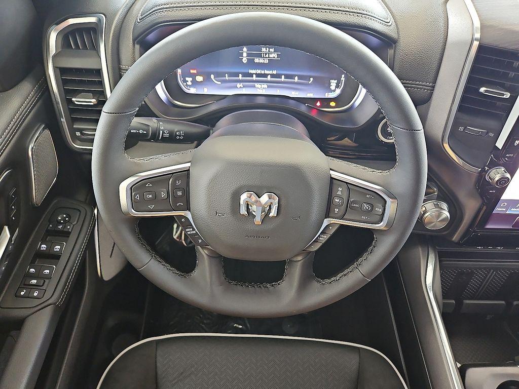 It is equipped with the latest generation of XM/Sirius Radio. The installed navigation system will keep you on the right path. Apple CarPlay: Seamless smartphone integration for the Ram 1500 - stay connected and entertained on the go! The vehicle comes equipped with Android Auto for seamless smartphone integration on the road. This Ram 1500 features a hands-free Bluetooth phone system. See what's behind you with the back up camera on this Ram 1500. The leather seats in the Ram 1500 are a must for buyers looking for comfort, durability, and style. Enjoy your music even more with the premium sound system in this unit. The vehicle's Forward Collision Warning system alerts the driver to potential front-end collisions, enhancing safety. The vehicle is pure luxury with a heated steering wheel. Never get into a cold vehicle again with the remote start feature on this 1/2 ton pickup. This model has automated speed control that adjusts to maintain a safe following distance, enhancing highway driving convenience.