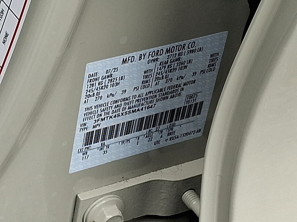 Bronze Appearance Package: Bronze Mesh Front Grille Shield; mach-E 4x Door Badges and Rear Gt Badge. Equipment Group 400A Standard Package: Single Speed Transmission; Heated Perforated ActiveX Performance Seats; Dual Motor EAWD (rear/upgraded Front); 20" Monochromatic High Gloss Black-Painted Wheels; 245/45R20 All-Season BSW Tires; B&O Sound System by Bang and Olufsen. Ford Connectivity Package (one-Time Purchase): Cellular Connectivity For Audio/video Streaming. Panoramic Fixed-Glass Roof. Tire Inflator and Sealant Kit. **Equipment listed is based on original vehicle build and subject to change. Please confirm the accuracy of the included equipment by calling the dealer prior to purchase.**