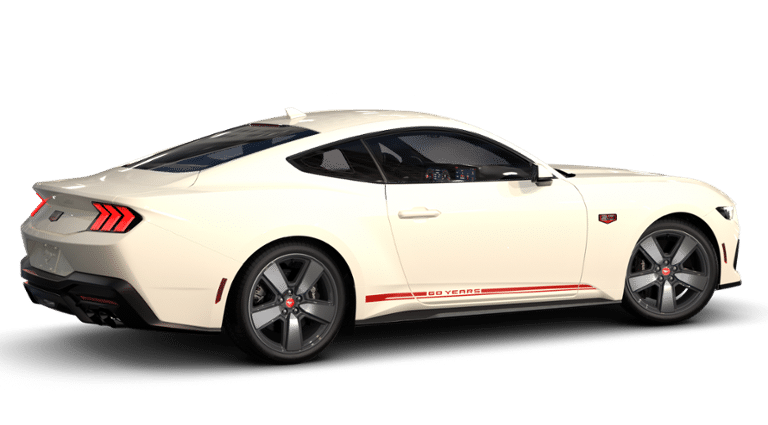 Ford Co-Pilot360 Assist+: Adaptive Cruise Control with Stop and Go; Connected Navigation; Pre-Collision Assist with Automatic Emergency Braking; Lane-Keeping System with Lane Keeping Aid. 60th Anniversary Package: Anniversary Special Edition Badge; Silver Painted Mirror Caps; Painted High Gloss Black Honeycomb Grille; Headlamps with Black Bezels; Spoiler Delete. Equipment Group 400A Standard Package: 5.0L Ti-VCT V8 Engine; 19" X 8.5" Shadow Silver-Painted Aluminum; 19" Tires; Leather-Trimmed Bucket Seats; AM/FM Stereo. Brembo Brake System with Performance Linings. Active Valve Performance Exhaust. 3.55 Limited Slip Rear Axle. B&O Sound System by Bang & Olufsen with 12 Speakers. Wimbledon White. **Equipment listed is based on original vehicle build and subject to change. Please confirm the accuracy of the included equipment by calling the dealer prior to purchase.**