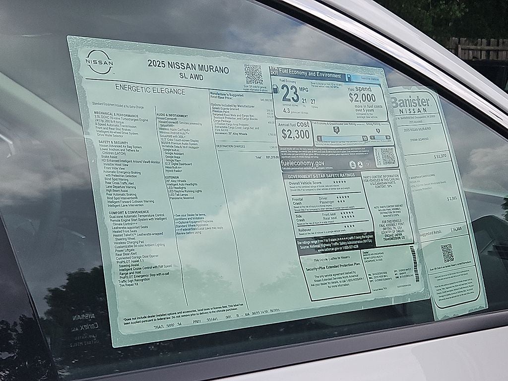 Discover the 2025 Nissan Murano SL, a sophisticated blend of style, performance, and technology. This versatile SUV, equipped with an efficient 4-cylinder, 2.0L engine and all-wheel drive, ensures a smooth and confident ride whether you're navigating city streets or exploring off the beaten path. Step inside to experience the perfect harmony of comfort and innovation. The Nissan Murano SL features an intuitive infotainment system with Apple CarPlay and Android Auto, seamlessly connecting your smartphone for a personalized driving experience. Stay connected and entertained with the premium BOSE stereo system, delivering exceptional sound quality for every journey. Enjoy the luxury of a heated steering wheel, providing warmth and comfort on chilly days. The hands-free Bluetooth® system makes it easy to stay connected with loved ones while keeping your focus on the road. The Nissan Murano’s elegant design is complemented by its spacious interior, offering ample room for passengers and cargo alike. With its sleek lines and advanced technology, the 2025 Nissan Murano SL is designed to elevate your driving experience. Visit us today to explore this remarkable SUV and see why it’s the perfect choice for those who demand more from their vehicle.