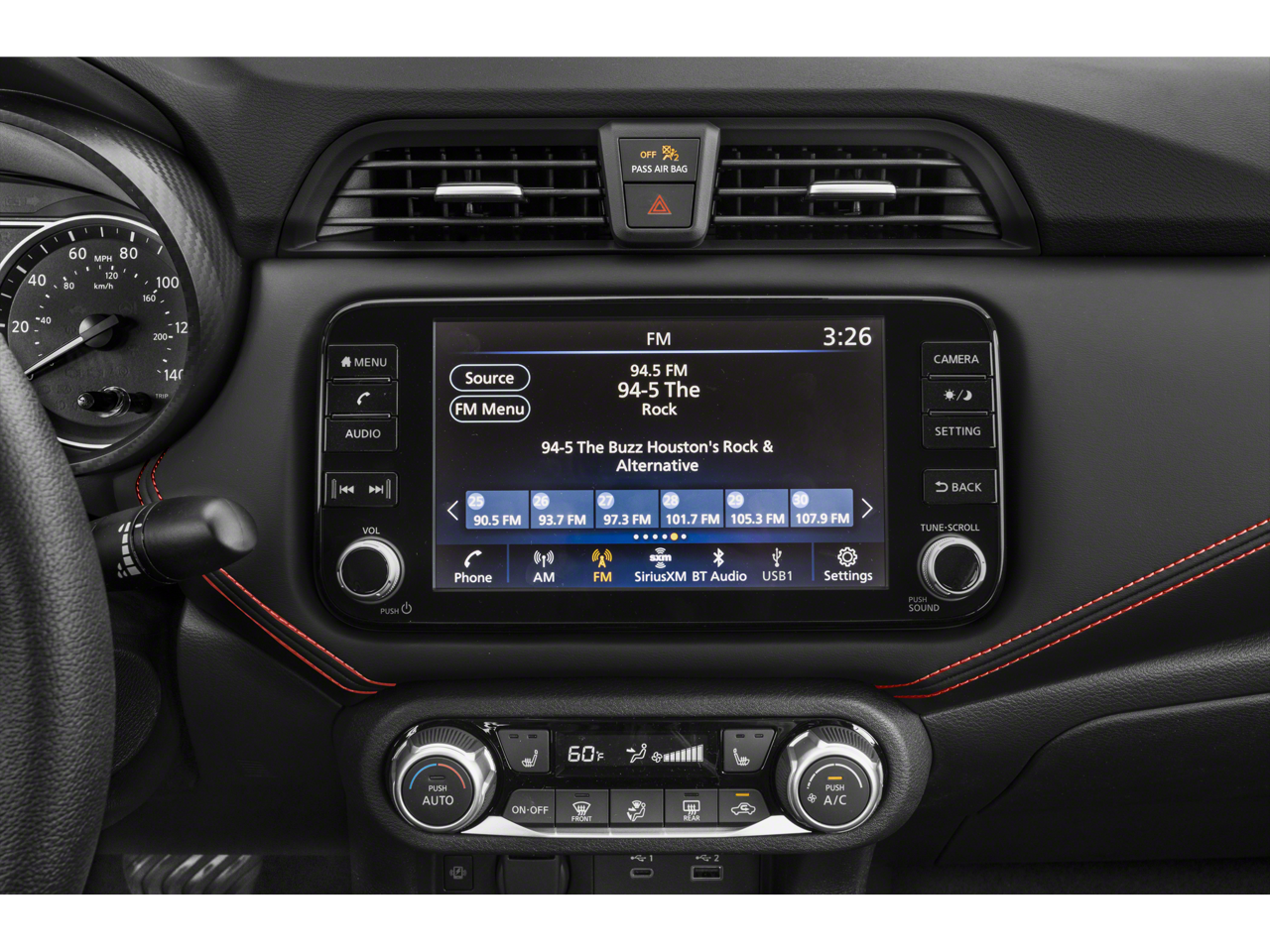 - Radio: AM/FM Audio System -inc: RDS, MP3, aux-in, 8" color touchscreen display (A-IVI PH2 DA), SiriusXM satellite radio, NissanConnect Services powered by SiriusXM featuring Apple CarPlay and Android Auto, Bluetooth® hands-free phone system, streaming audio via Bluetooth®, interface for iPod and other compatible devices, hands-free text messaging assistant, Siri Eyes Free/Google Assistant voice recognition, 6 speakers, 3 USB ports (2-charge only)
