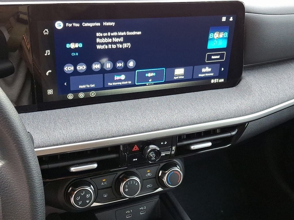 - Radio: AM/FM/SiriusXM Audio System -inc: 12.3" color touchscreen display w/4 speakers, Bluetooth® hands-free phone system, streaming audio via Bluetooth®, NissanConnect featuring wireless Apple CarPlay, wireless Android Auto, Siri eyes free and hands-free text messaging assistant, audio and Bluetooth® steering wheel switches