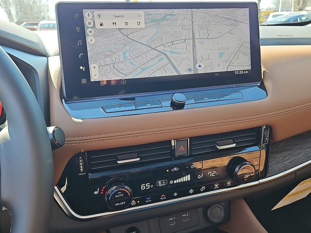 - Radio: AM/FM NissanConnect w/Navigation -inc: SiriusXM 360L, hybrid radio, enhanced voice recognition (one shot VDE, natural language understanding), Active Noise Cancellation, wireless Apple CarPlay, wireless Android Auto, 12.3" color HD display, Bluetooth®, 2 front USB type-C, Wi-Fi hotspot, Alexa Built-In, Google built-in: Google Assistant, Play Store, maps, data, NissanConnect Services powered by SiriusXM, SiriusXM Traffic and SiriusXM Travel Link
