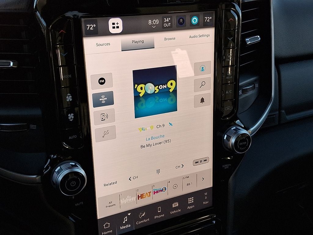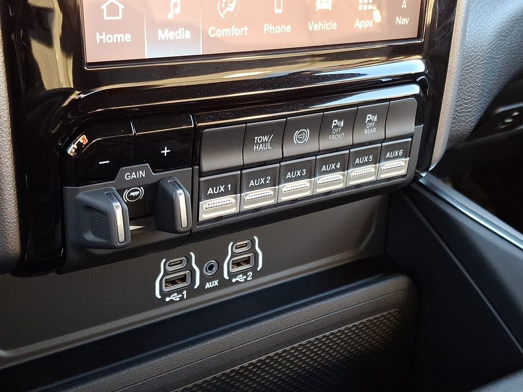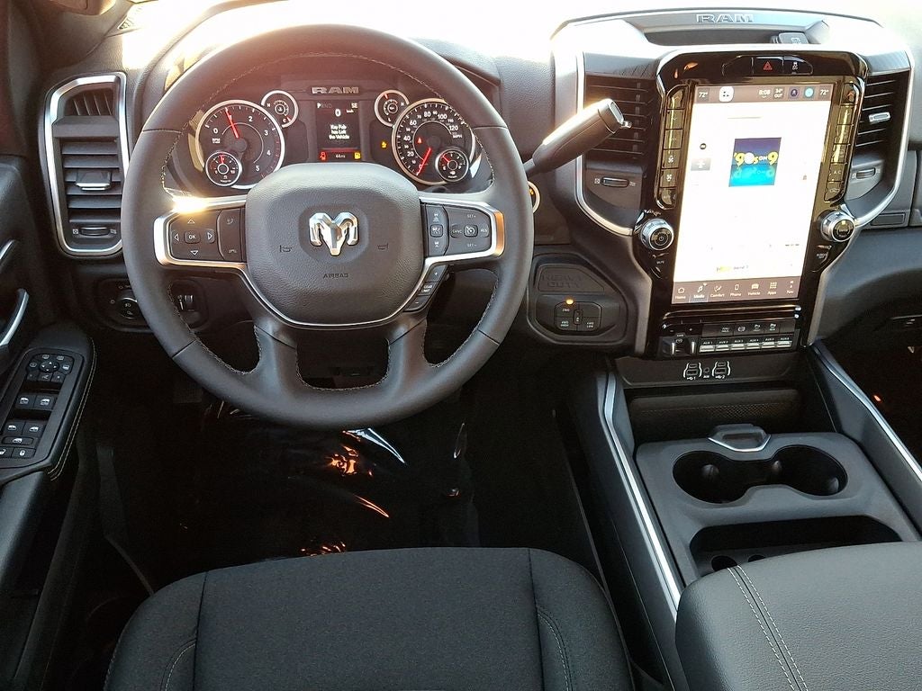 Quick Order Package 24Z Big Horn. Night Edition: Firestone Brand Tires; Gloss Black Nostrils/mic Black Grille; LT285/60R20E OWL On/off Road Tires; Black Exterior Truck Badging; 20" X 8.0" Black Painted Aluminum Wheels; Body Color Grille-Surround; Black Interior Accents; Black Wheel Center Hub; Painted Front Bumper; Painted Rear Bumper. Big Horn Level 1 Plus Equipment Group: Google Android Auto; SiriusXM Radio Service; For Details. Visit DriveUconnect.com; For More Info. Call 800-643-2112; Integrated Voice Command with Bluetooth®; Emergency Vehicle Alert System (EVAS); 12" Touchscreen Display; Glove Box Lamp; Auto Power-Folding Mirrors; Footwell Courtesy Lamp; Anti-Spin Differential Rear Axle; Mirror Running Lights; MOPAR Deployable Bed Step; Alexa Built-In; Apple CarPlay; Power-Adjustable Convex Aux Mirrors; Forward and Reverse Utility Lights; Locking Lower Glove Box; Remote Start System; 9 Alpine Speakers with Subwoofer; Disassociated Touchscreen Display; Dual Glove Boxes; 2nd Row in Floor Storage Bins; Rear View Auto Dim Mirror; Rear Dome with On/off Switch Lamp; LED Bed Lighting; Connectivity - US/Canada; GPS Navigation; 4G LTE Wi-Fi Hot Spot; GPS Antenna Input; Exterior Mirrors with Heating Element; SiriusXM with 360L; Global Telematics Box Module; Connected Travel and Traffic Services; Foam Bottle Insert (door Trim Panel); Black Exterior Mirrors; Big Horn Instrument Panel Badge; Off-Road Info Pages; Selectable Tire Fill Alert; Trailer Tow Pages; HD Radio; Uconnect 5 Navigation with 12.0" Display Radio; Power Heated Folding Telescopic Mirrors; Exterior Mirrors with Supplemental Signals; Steering Wheel Mounted Audio Controls; Exterior Mirrors Courtesy Lamps; Air Conditioning ATC with Dual Zone Control; MOPAR Spray in Bedliner; Power Adjust Mirrors; Luxury Steering Wheel; Power Telescoping Mirrors. Quick Order Package 2UZ Big Horn. 5th Wheel/gooseneck Towing Prep Group. Anti-Spin Differential Rear Axle. Premium Cloth Bucket Seats. Remote Start System. Instrument Panel Mounted Auxiliary Switches. Rear Wheelhouse Liners. Clearance Lamps. Power 2-Way Driver Lumbar Adjust. **Equipment listed is based on original vehicle build and subject to change. Please confirm the accuracy of the included equipment by calling the dealer prior to purchase.**
