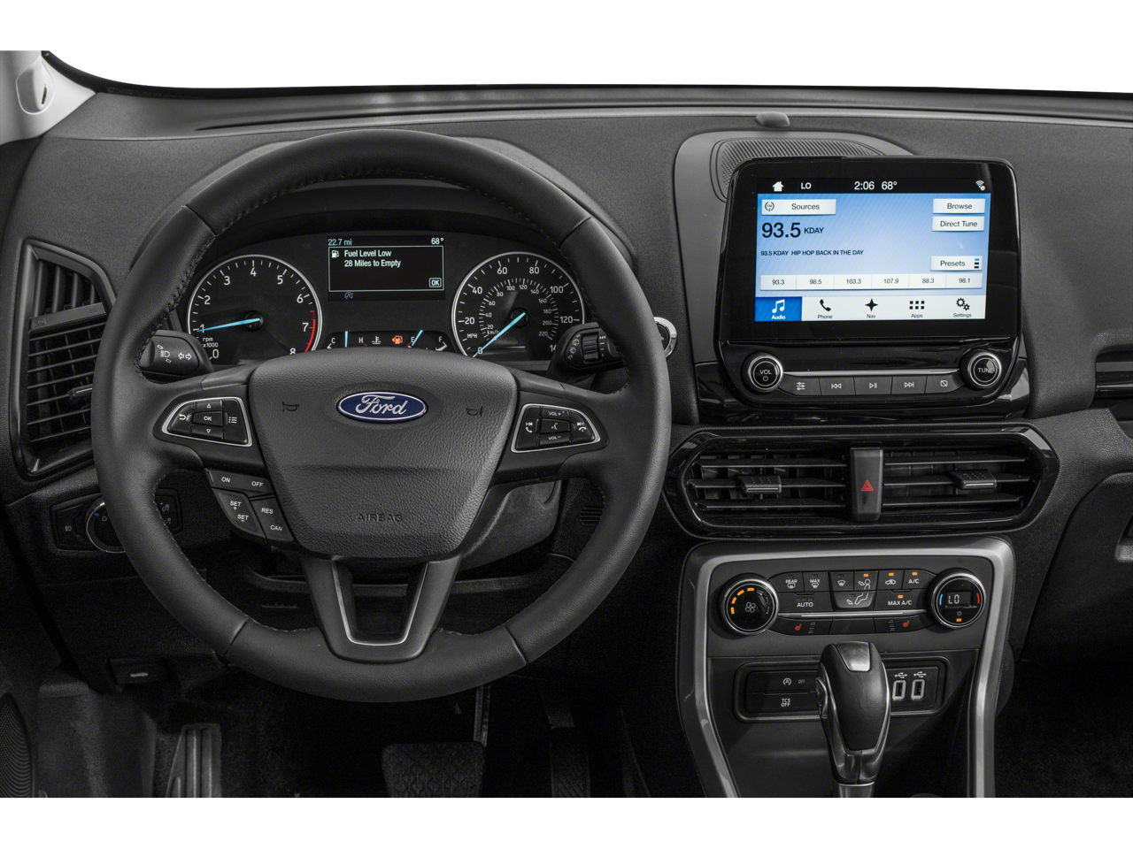Our dealership has already run the CARFAX report and it is clean. A clean CARFAX is a great asset for resale value in the future. The rear parking assist technology on this 2018 Ford Ecosport will put you at ease when reversing. The system alerts you as you get closer to an obstruction. Bluetooth® technology is built into the Ford Ecosport, keeping your hands on the steering wheel and your focus on the road. This model keeps you comfortable with Auto Climate. See what's behind you with the back up camera on this 2018 Ford Ecosport . This Ford Ecosport offers Android Auto for seamless smartphone integration. Apple CarPlay: Seamless smartphone integration for this small suv - stay connected and entertained on the go! Front wheel drive on this small suv gives you better traction and better fuel economy. This small suv embodies class and sophistication with its refined white exterior.