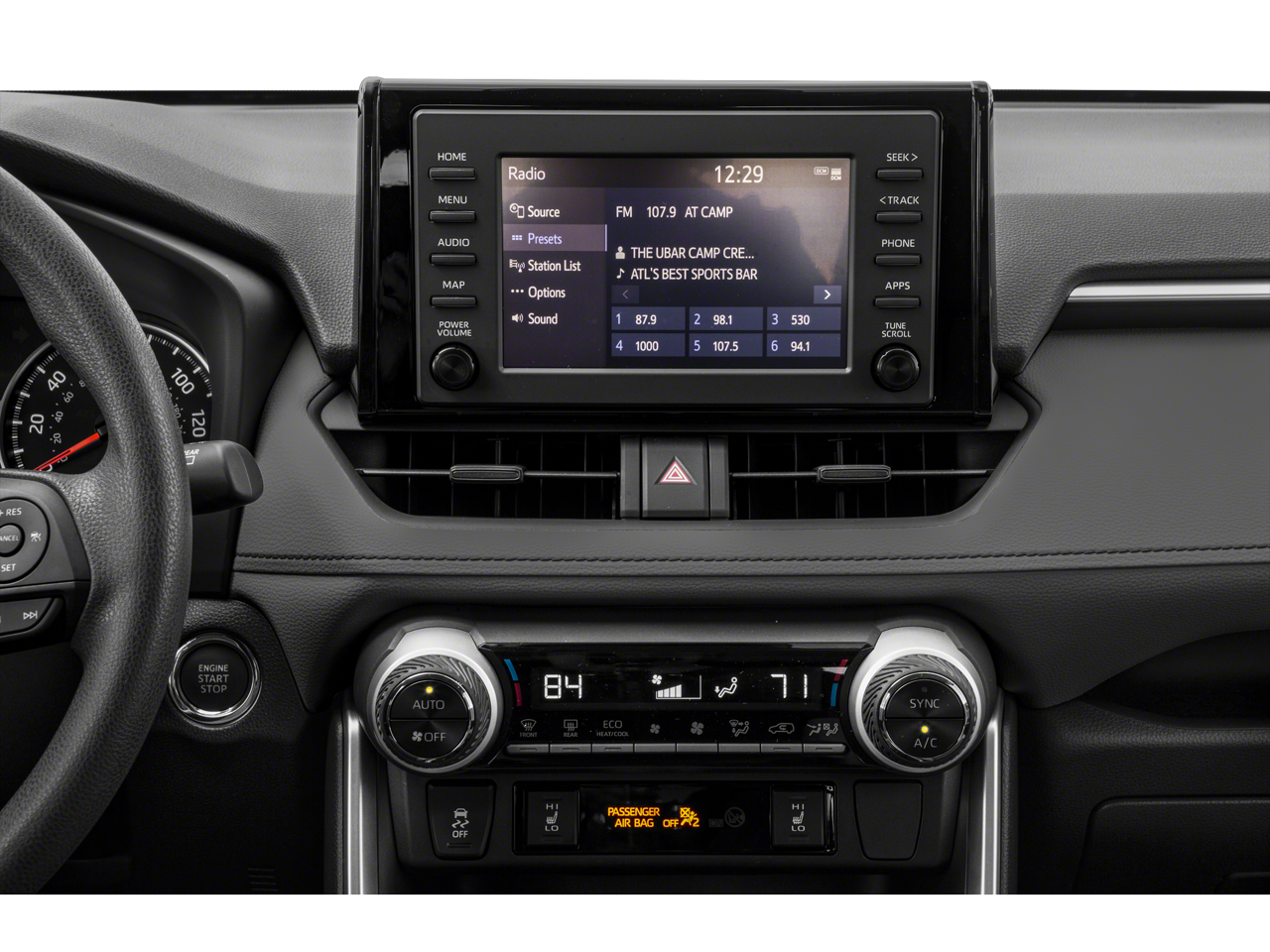 - Radio w/Seek-Scan, Clock, Speed Compensated Volume Control, Steering Wheel Controls, Voice Activation and Radio Data System