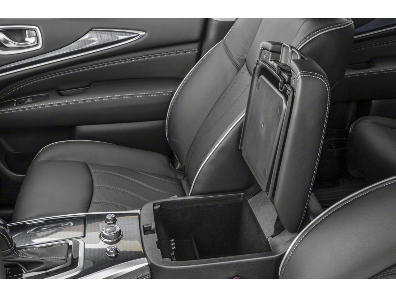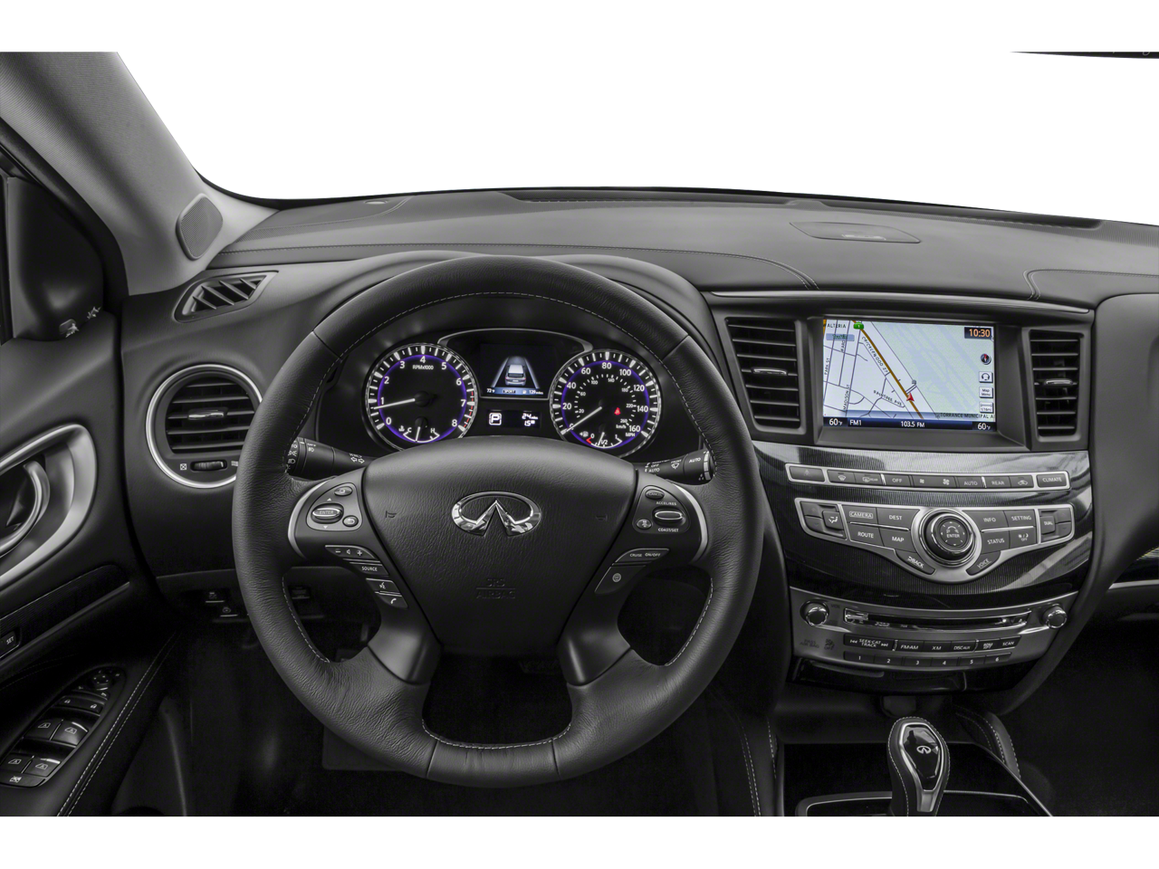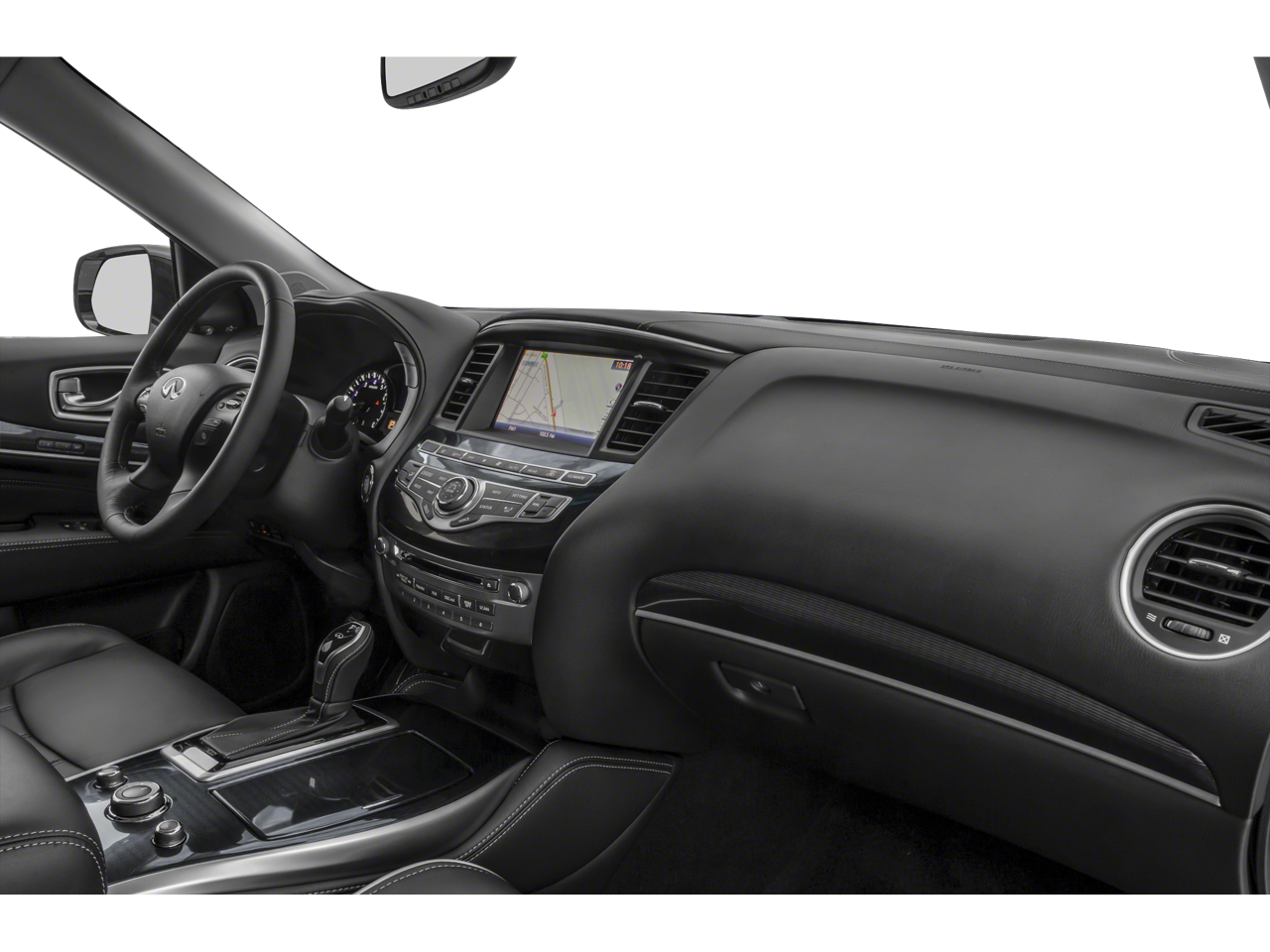 Essential Package: Front and Rear Sonar Sensors (2 Front/2 Rear); Leather-Appointed Seat Trim; Rain-Sensing Front Windshield Wipers; Around View Monitor with Moving Object Detection; INFINITI InTouch with Navigation and InTouch Services; Illuminated Kick Plates. Cargo Package Essential: Rear Cargo Cover; Cargo Protector; Console Net; First Aid Kit. Illuminated Kick Plates. Welcome Lighting. Splash Guards. **Equipment listed is based on original vehicle build and subject to change. Please confirm the accuracy of the included equipment by calling the dealer prior to purchase.**