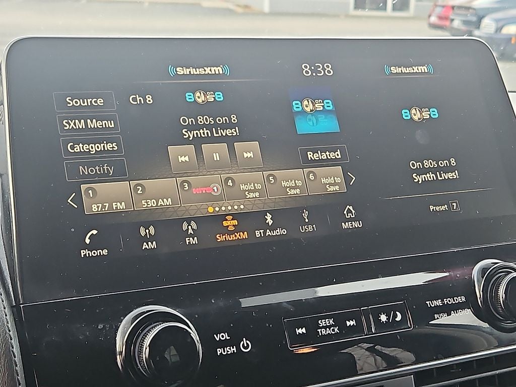 - Radio: NissanConnect w/SiriusXM -inc: 6-speaker audio system, wireless Apple CarPlay, Android Auto, Nissan door to door navigation, 12.3" color display w/multi-touch control, SiriusXM Traffic and Travel Link w/three month complimentary trial access, NissanConnect Services powered by SiriusXM, Bluetooth® hands-free phone system, hands-free text messaging assistant and Wi-Fi hotspot