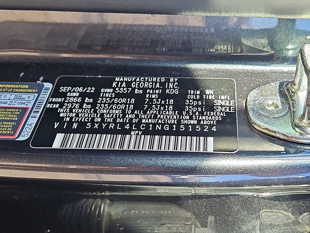 You'll never again be lost in a crowded city or a country region with the navigation system on this 2022 Kia Sorento . The state of the art park assist system will guide you easily into any spot. Apple CarPlay: Seamless smartphone integration for this Kia Sorento - stay connected and entertained on the go! Protect this unit from unwanted accidents with a cutting edge backup camera system. This Kia Sorento utilizes collision avoidance to enhance safety by automatically detecting and evading potential accidents. This vehicle stays safely in its lane with Lane Keep Assist. The leather seats in this model are a must for buyers looking for comfort, durability, and style. It is equipped with the latest generation of XM/Sirius Radio. Our dealership has already run the CARFAX report and it is clean. A clean CARFAX is a great asset for resale value in the future. The vehicle comes equipped with Android Auto for seamless smartphone integration on the road.