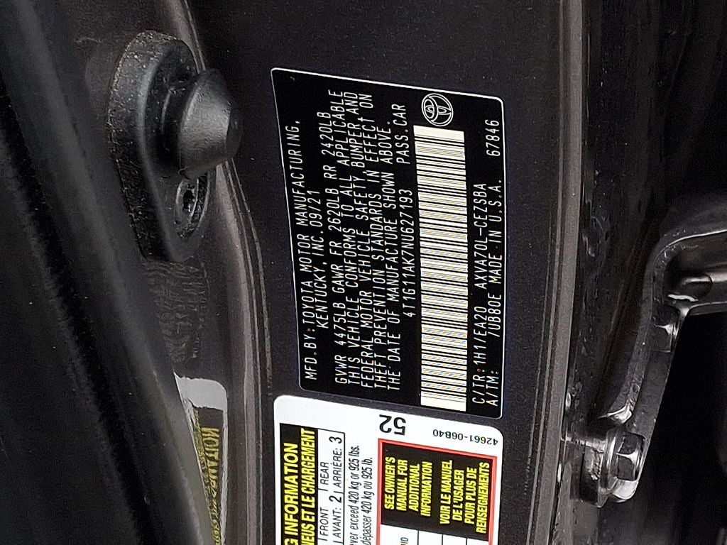This model offers Automatic Climate Control for personalized comfort. Good News! This certified CARFAX 1-owner vehicle has only had one owner before you. This vehicle has a clean CARFAX vehicle history report. This unit offers Apple CarPlay for seamless connectivity. This unit offers Android Auto for seamless smartphone integration. The leather seats in this Toyota Camry are a must for buyers looking for comfort, durability, and style. This mid-size car features a hands-free Bluetooth® phone system. See what's behind you with the back up camera on this vehicle. The vehicle emanates grace with its stylish gray exterior. Set the temperature exactly where you are most comfortable in the vehicle. The fan speed and temperature will automatically adjust to maintain your preferred zone climate. The Toyota Camry is front wheel drive. The Toyota Camry has a 4 Cyl, 2.5L high output engine. Electronic Stability Control is one of many advanced safety features on this Toyota Camry.