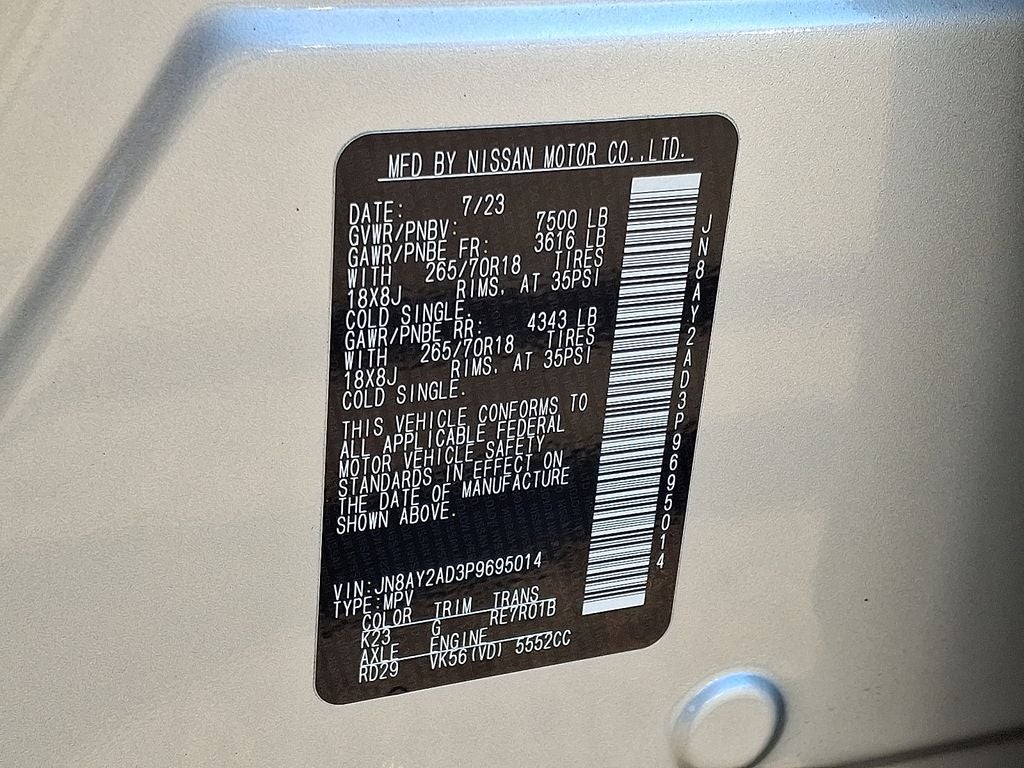 2023 Nissan Armada SV — Low Mileage, Best Price in Norfolk, VA Looking for a powerful, spacious SUV with premium features and low miles? This 2023 Nissan Armada SV in Norfolk, VA delivers. Powered by a robust 5.6L V8 gasoline engine and equipped with 4WD, this Nissan Armada offers confident performance for towing, highway driving, and weekend adventures. With only 17,105 miles, it's a low-mileage find that gives you the near-new ownership experience without the new-vehicle cost. Comfort and technology are well covered: Remote Start for convenience, factory Navigation for stress-free trips, and Android Auto for seamless smartphone integration. Enjoy premium sound with XM Radio and added peace of mind from Forward Collision Warning safety tech. The Nissan Armada SV combines rugged capability with modern connectivity and driver assistance features. This vehicle is priced to move — the best price available locally — making it an exceptional value for buyers seeking a reliable, feature-rich SUV in the Hampton Roads area. Whether you need a family hauler, a tow-ready crossover, or a comfortable long-distance cruiser, this Nissan Armada checks the boxes. Schedule a test drive in Norfolk, VA today to experience the V8 power, 4WD traction, and low-mileage advantage firsthand. Competitive pricing and ready availability make this 2023 Nissan Armada SV a smart choice.