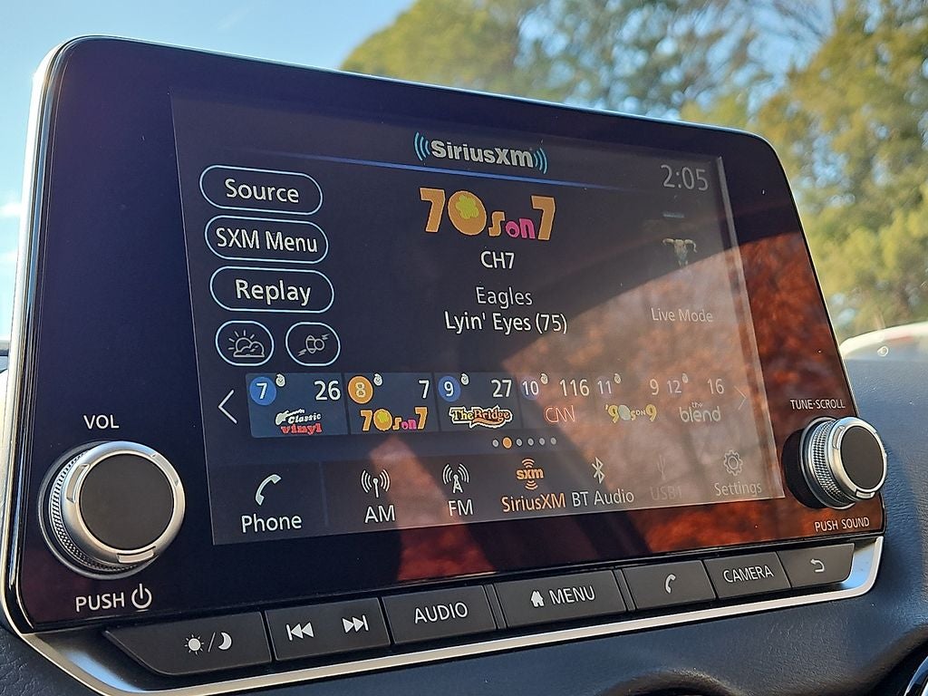 - Radio: AM/FM w/RDS/MP3/Aux-In -inc: 6 speakers plus 2 tweeters in A-pillar, 8" color display w/multi-touch control, streaming audio via Bluetooth®, Bluetooth® hands-free phone system, hands-free text messaging assistant, Siri Eyes Free, Google Assistant voice recognition w/Apple CarPlay and Android Auto, NissanConnect, (1) front USB connection port (type A), (1) additional front USB (type C), (1) charge-only USB (type A) center console and SiriusXM radio w/advanced audio features